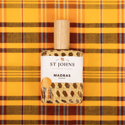 From India to Africa to the Caribbean; this cool, comfortable and colorful fabric has travelled the globe and is the inspiration for St. John's new cologne. The Madras Cologne weaves the freshness of mandarins with the sharpness of black pepper and cedar and the softness of Costus Absolute to create this cool and relaxed mélange. Madras is the perfect fragrance for evenings at the beach or drinks on the dock.
