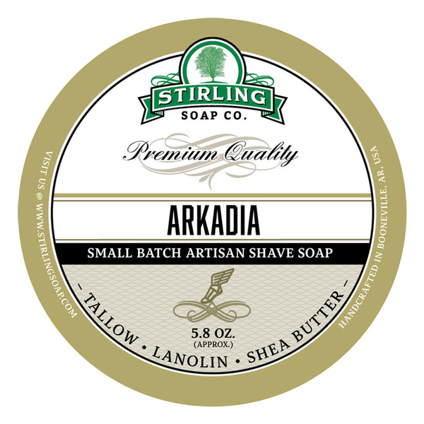 Get an amazing shave at an unbeatable price with Stirling Shave Soap! Crafted in small batches, these fine soaps offer a rich, easy to build lather, great cushion, and fantastic slickness for a truly smooth shaving experience. A natural blend of tallow, glycerin, and lanolin combined with almond oil, shea butter, and coconut milk soothes and nourishes, leaving skin ultra-hydrated and soft.Arkadia Shave Soap:This scent has top notes of Orange and Grapefruit, middle notes of Black Pepper and Pelargonium (Geranium), and base notes of Patchouli, Cedar, Vetiver, and Vanilla. It's elegant, grassy, and amazingly provocative.Inspired by Terre d'Hermes.Arkadia Shave Soap is scented with fragrance oils.