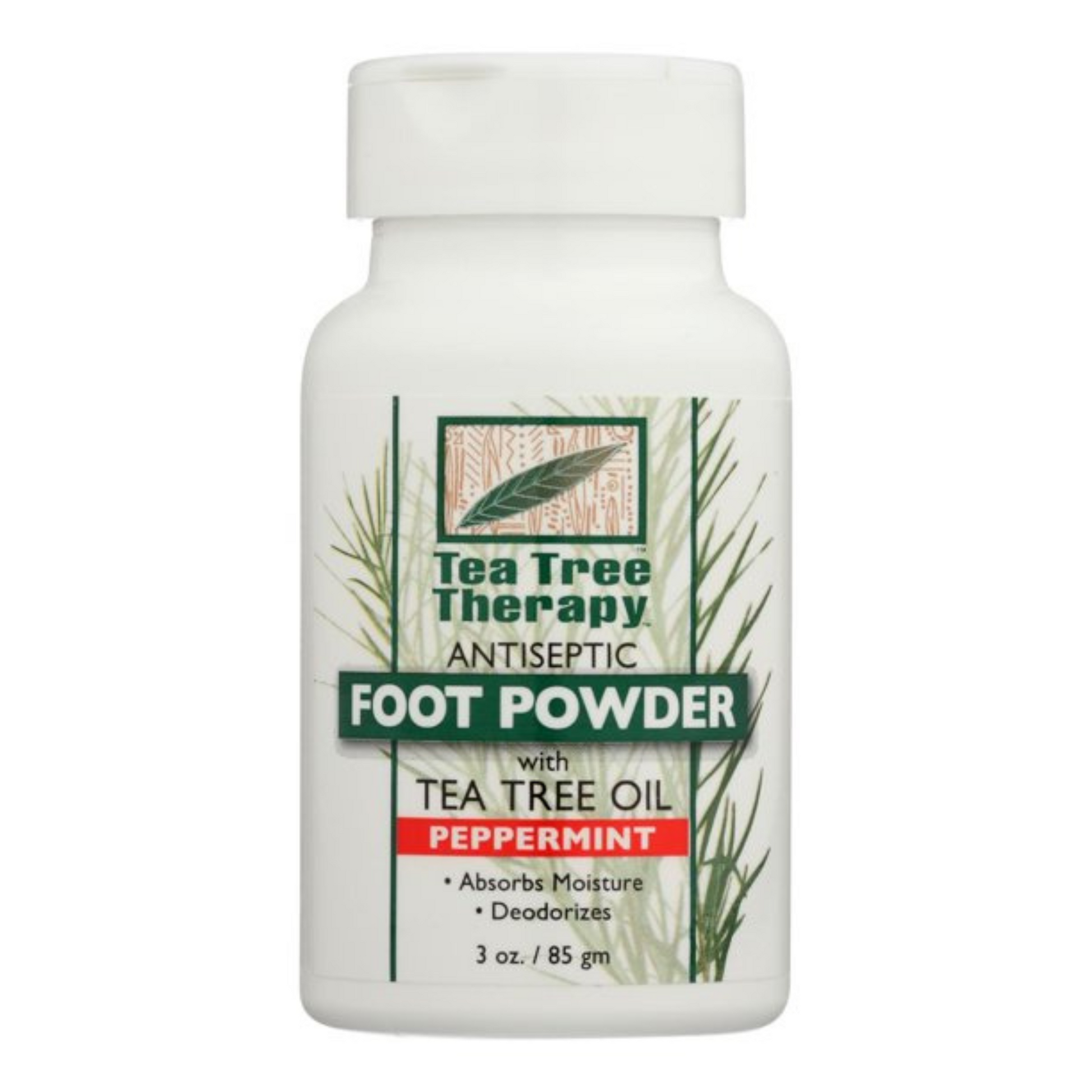 Tea Tree Therapy Foot Powder with peppermint is for any customer who is looking for a TALC FREE powder with the absorption properties of corn starch. Tea Tree oil and Eucalyptus radiata are proven natural antiseptics. Keeps feet dry and odor free.