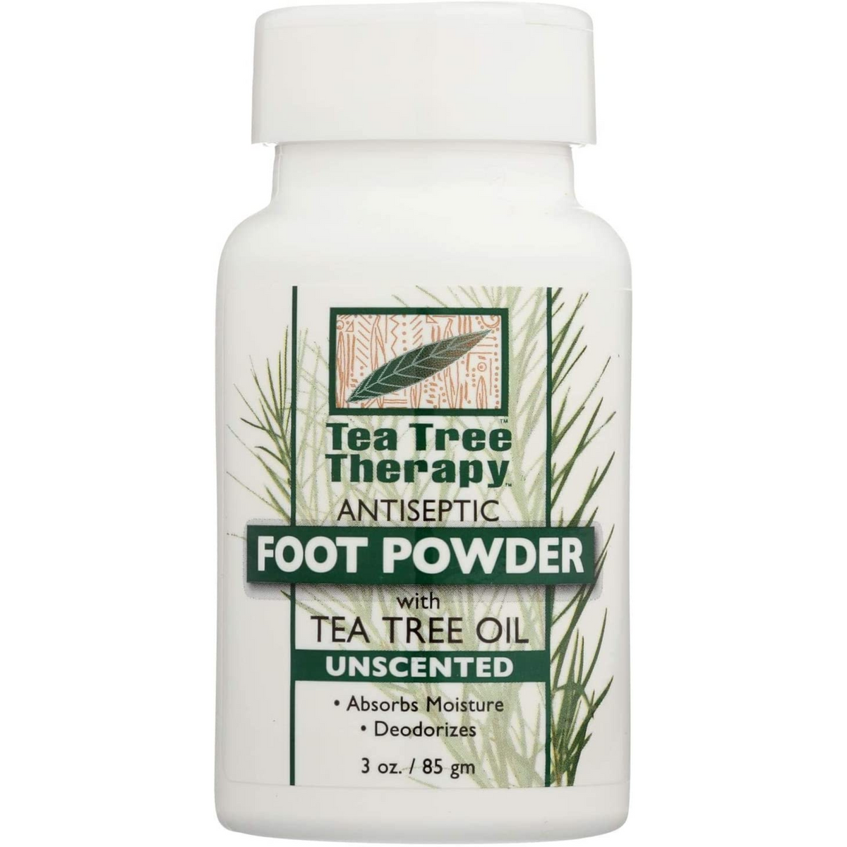 Tea Tree Therapy Foot Powder is for any customer who is looking for a TALC FREE powder with the absorption properties of corn starch. Tea Tree oil and Eucalyptus radiata are proven natural antiseptics. Keeps feet dry and odor free.