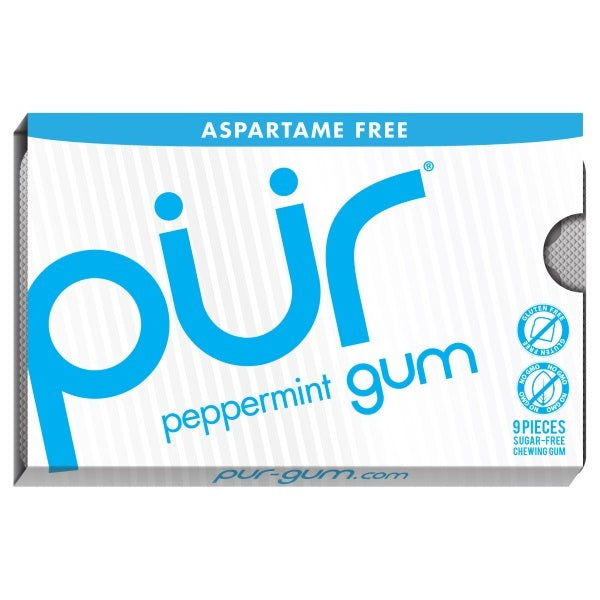 PUR Peppermint gum gives a blast of crisp, cool, sweet peppermint flavor with every bite. Sweetened with Xylitol, enjoy a great tasting gum with the antioxidant benefits of white tea that KICKS ASAPARTAME.What makes PUR so pure?- Naturally sweetened with xylitol- Gluten-free- Vegan- Non-GMO- Diabetic-friendly- Nut-free and soy-free- Dairy-free- Safe for pregnant moms- Swiss-made