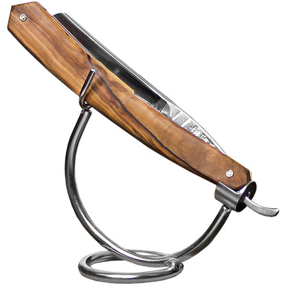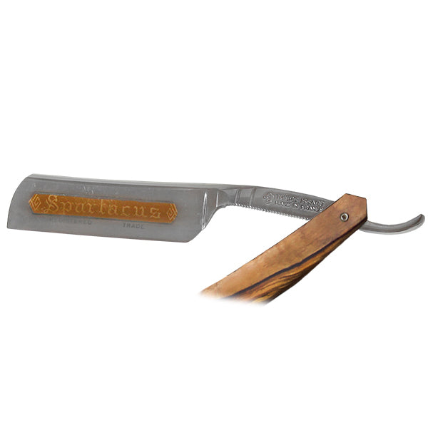 A superior quality straight razor, the 188 Olivewood Spartacus is both a pleasure to look at and use. It is well-balanced, with a unique nose great for detail work.Blade Type: Fully hollow-ground C135 carbon steel; rounded French nose, razor name in gold leaf, and a mirror finish.Blade Size: 6/8''Scale: Handsome Olivewood.Features: Jimps for a secure grip. Attractive ''Thiers Issard'' etching.Packaged in a leather pouch. Handmade in France.