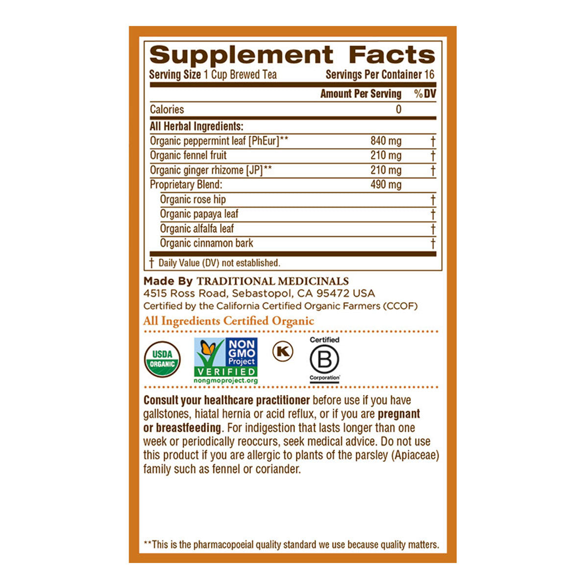 Belly Comfort Peppermint is a refreshing way to end a meal, a snack, or anytime your stomach needs comforting. A blend of classic digestive herbs?cool and refreshing peppermint, soothing fennel and spicy ginger?whose digestive properties complement each other, Traditional Medicinals' herbalists created this tea to both promote and stimulate healthy digestion.This tea is a refreshingly aromatic blend of tastes?spicy, sweet and pepperminty.(Formerly Eater's Digest)