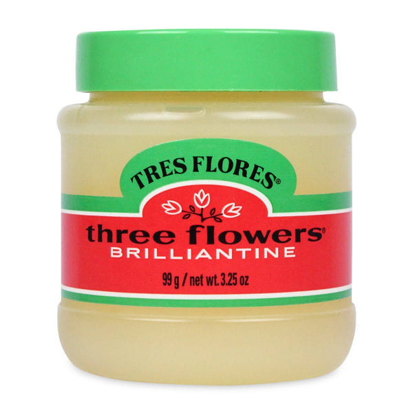 Three Flowers Solid Brilliantine is a hair pomade used to keep hair in place.
