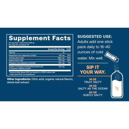 Hydrate the True Grace way. These electrolyte packets are more than just a hydration boost. Boasting an assortment of quality vitamins and minerals, including magnesium and potassium, they keep you hydrated and boost recovery. With no sugar and no carbs hydrate saltier, not sweeter, with these Grapefruit ElectroMag Packets.