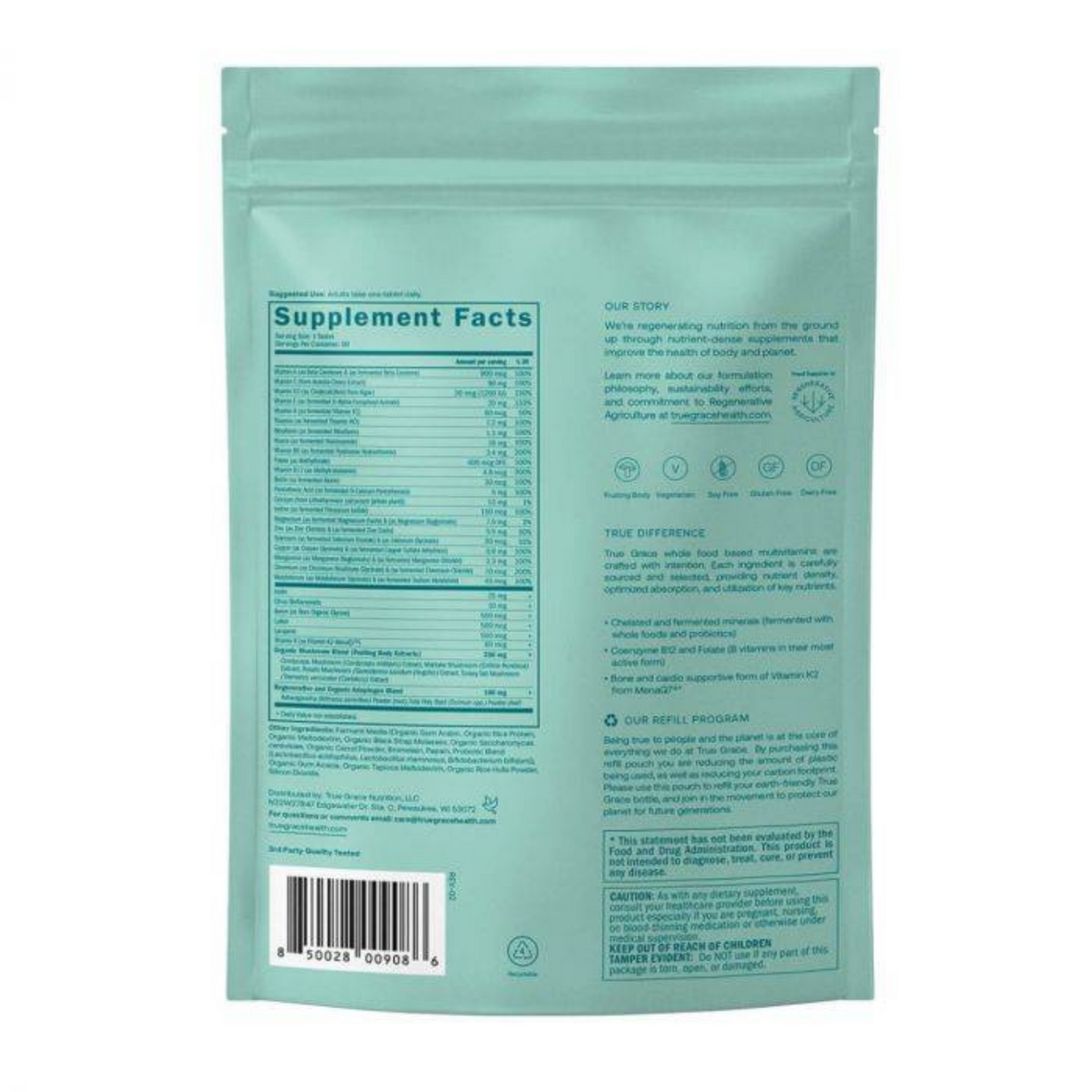 True Grace Men's One Daily Multivitamin Refill Pouch is a great way to make sure you always have your multivitamin supplements without worrying about running out. True Grace is carefully sourced and selected, providing high concentration, optimal absorption, and utilization of the key nutrients.