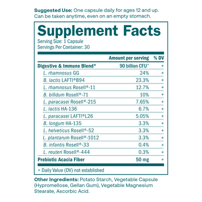 True Grace One Daily Probiotics are crafted with intention. Each probiotic strain has been carefully selected and combined in specific, consistent ratios that True Grace is completely transparent about- right on the label. The final touch is True Grace's Prebiotic fiber.