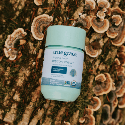 True Grace mushroom extracts come from the parts of a mushroom you can see when it’s growing. This is called the “fruiting body” (typically the stem, gills, and cap of the mushroom). The fruiting body has higher levels of active compounds, including beta-glucans, than the mushroom’s “mycelium” (root-like strands).