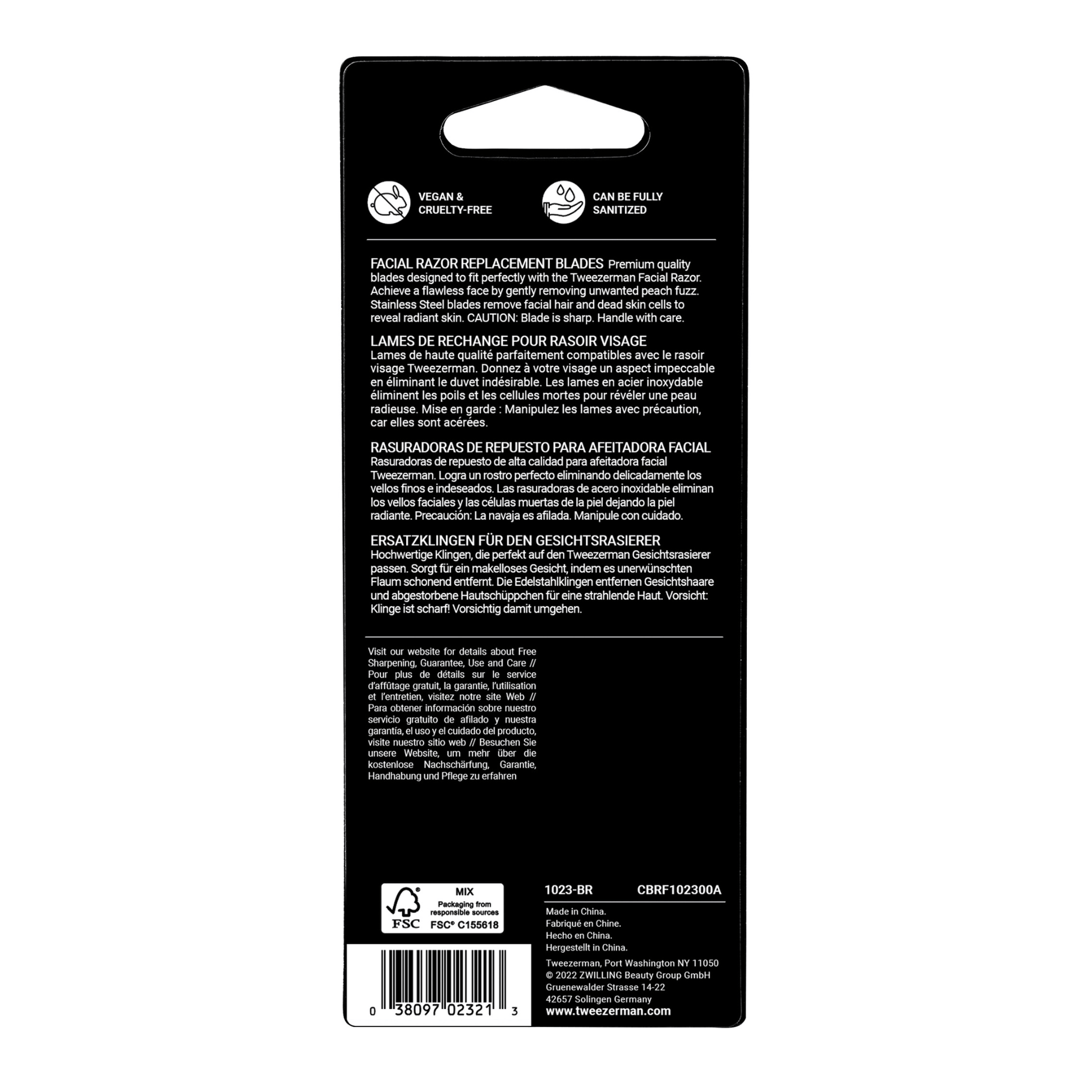 Premium quality blades designed to fit perfectly with the Tweezerman Facial Razor. Safely remove unwanted facial hair at home and gently exfoliate the face.
