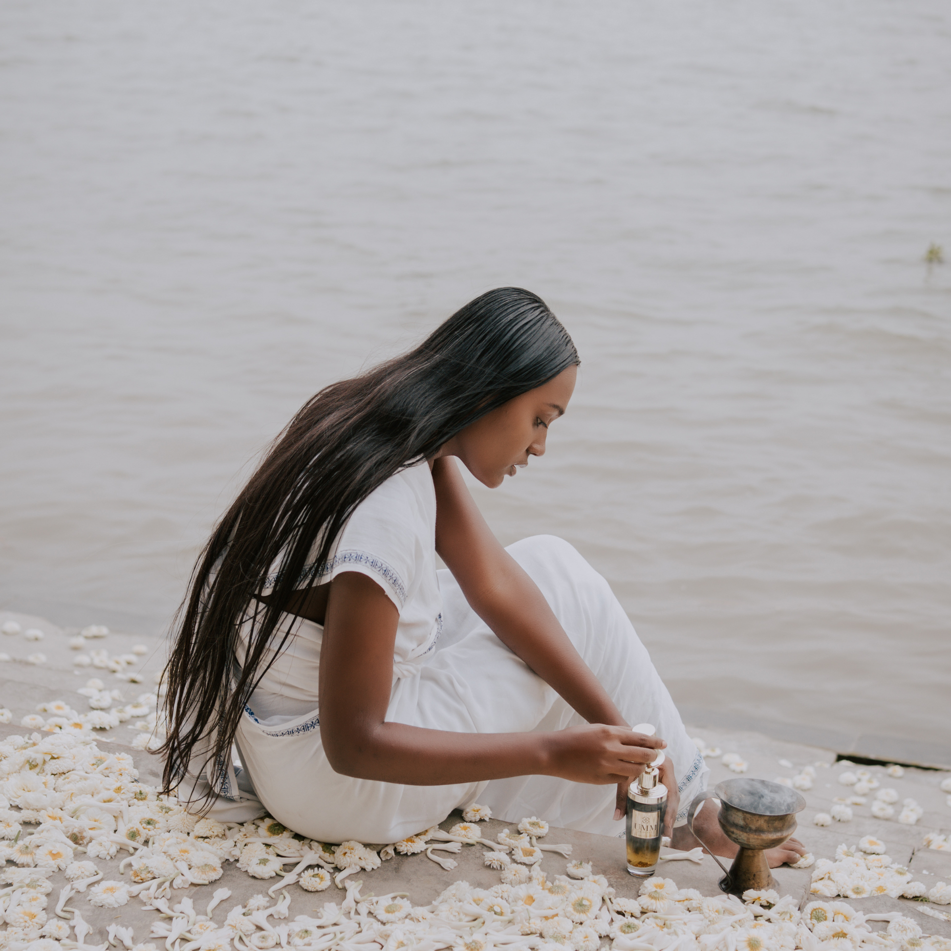 The Elixir Oil is an advanced anti-aging Ayurvedic formulation that slows collagen depletion, stimulates cell regeneration, and restores the skin's elasticity. An exceptionally rich and fast-absorbing elixir, it is a post-shower rejuvenating, restorative, and nourishing treatment oil.