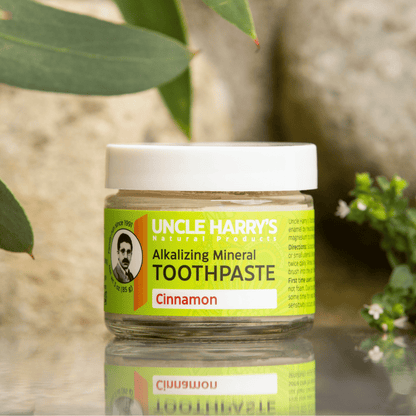 Clean and alkalize with daily brushing. Uncle Harry’s Toothpaste encourages remineralization of tooth enamel by neutralizing acids and bacteria, supplying calcium and magnesium to strengthen teeth, and promoting an alkaline pH.