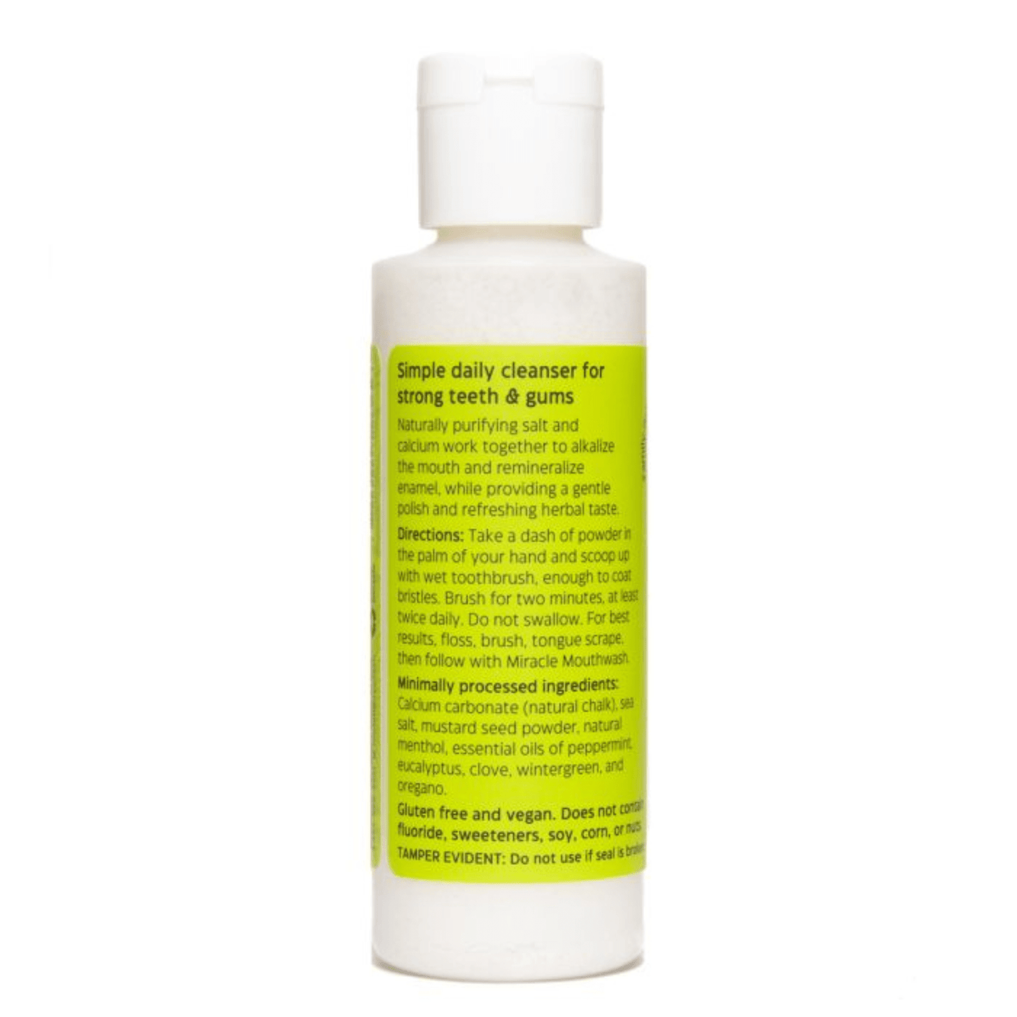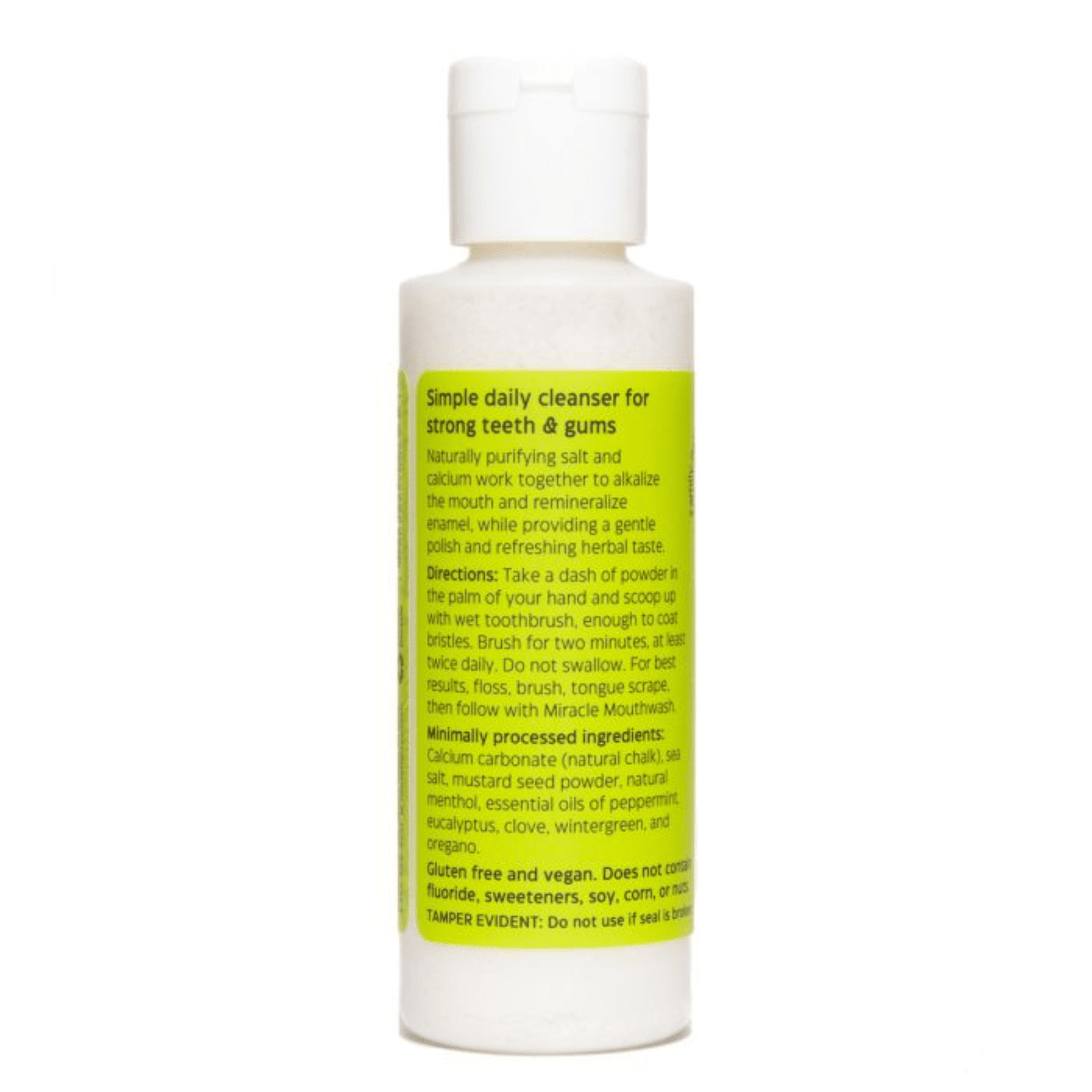 Minimally processed ingredients: Calcium carbonate (natural chalk), sea salt, mustard seed powder, natural menthol, essential oils of peppermint, eucalyptus, clove, wintergreen, and oregano.