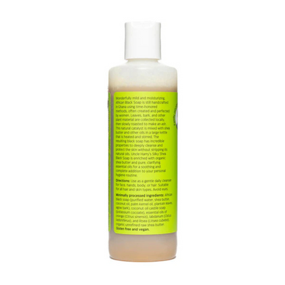 Uncle Harry’s Silky Shea Black Soap is enriched with organic shea butter and pure, clarifying essential oils for a soothing and complete addition to your personal hygiene routine. This do it all soap can be used on the face and body but also in the hair or as a hand soap.