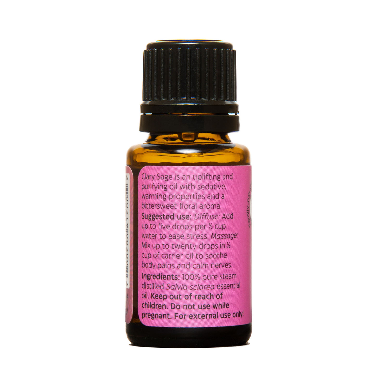 Clary sage is a purifying oil with deodorizing and warming properties. It has a dry, bittersweet floral aroma and blends well with juniper, geranium, pine, frankincense, and citrus oils.