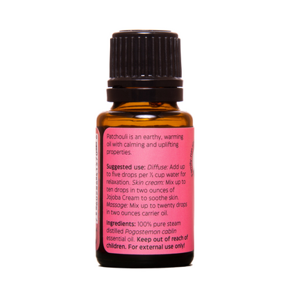 Patchouli is an earthy, warming oil with calming and uplifting properties. It blends well with Sandalwood, Lemon, or Myrrh oils.