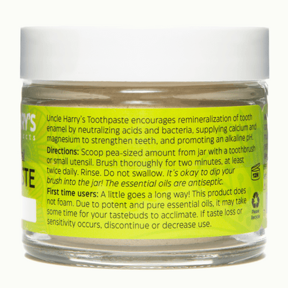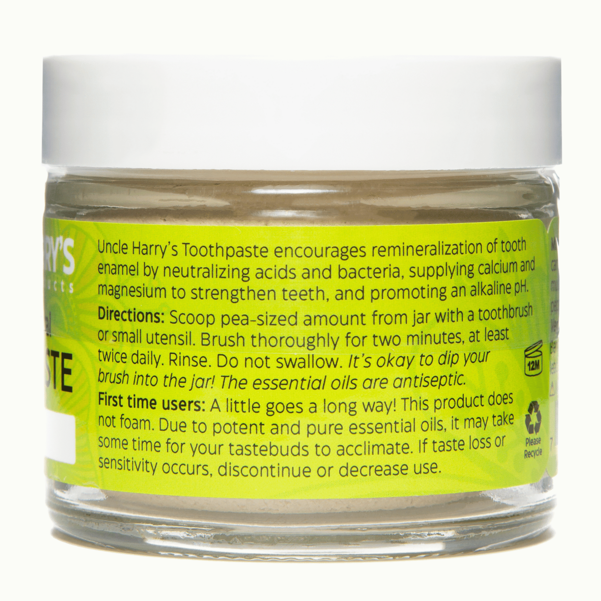 This is a non-toxic toothpaste, free of preservatives, synthetic foaming agents, abrasives and glycerine. The ionic minerals in this toothpaste supply significant amounts of calcium and magnesium for healthy teeth.