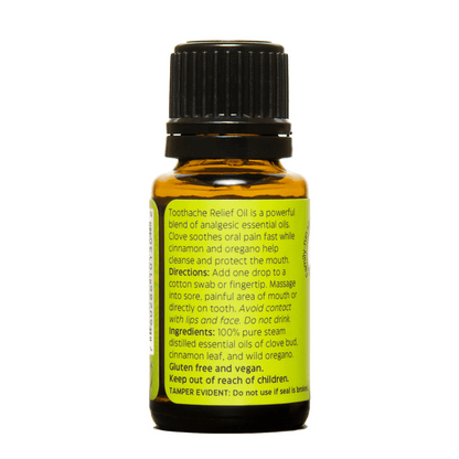 Save gums and relieve pain naturally. Clove oil is very powerful and great for oral pain as it has immediate analgesic and anesthetic qualities to numb and soothe oral pain. The Cinnamon and Oregano oil in Tooth Ache Relief will soothe pain while killing bacteria. For strong tooth pain use as a compress by applying a couple drops to a natural cotton ball and then apply the cotton ball in 20 minute increments to the affected area.