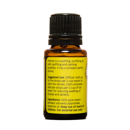 Vetiver is a soothing, purifying oil with uplifting and calming qualities. It has a complex earthy aroma. Vetiver blends well with Lavender, Rose, Jasmine, oakmoss, Ylang Ylang, and citrus oils.