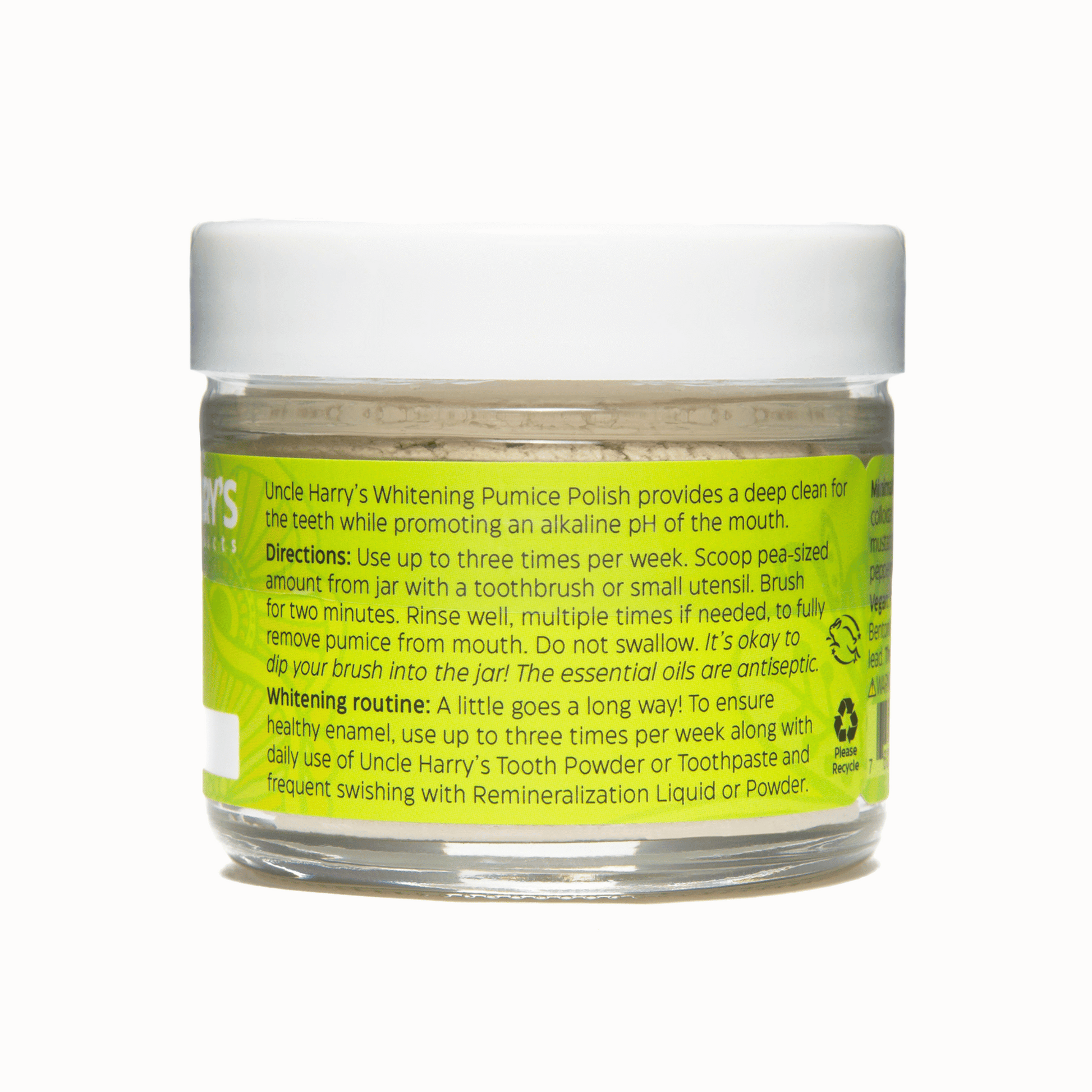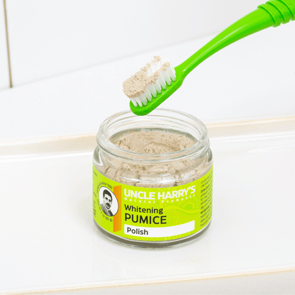 Uncle Harry’s Whitening Pumice Polish provides a deep clean for the teeth while promoting an alkaline pH of the mouth.