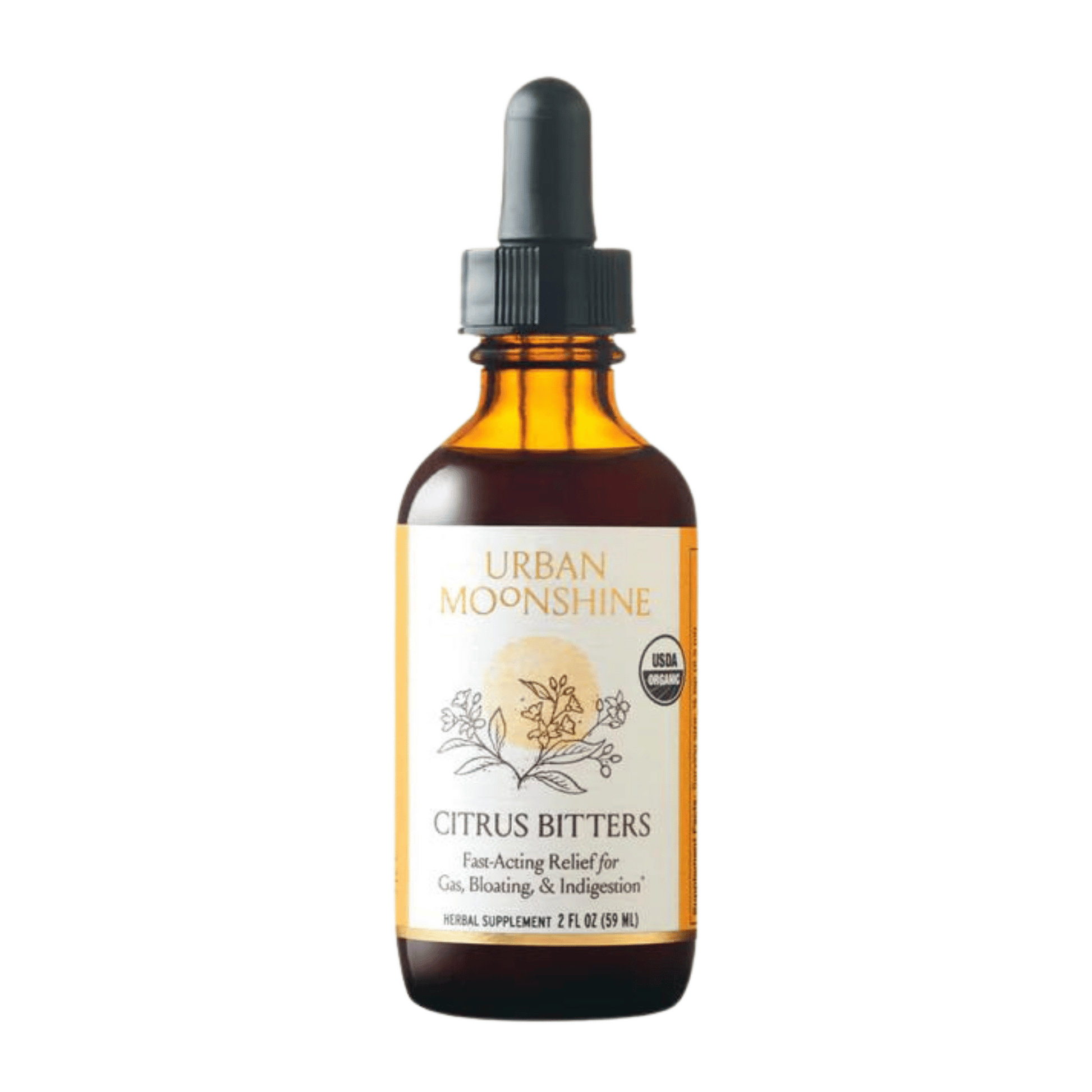 Urban Moonshine's Citrus Bitters is a full bodied and exotic aromatic citrus bitters brings you the traditional taste with a burst of sunshine. A combination of blood orange, fresh squeezed lime and sweet orange brings the ideal blend to your cocktails or a more enjoyable flavor for your bitter medicinal. The 2 oz bottle is the perfect size for your home apothecary or on the go.