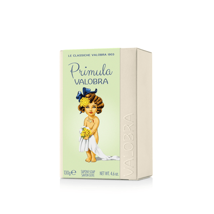 Valobra's classic Primula soap is a super-fatted, extremely gentle soap, suitable for sensitive skin, even infants. Its Rice Oil cream and blend of vitamins gently cleanse and soften the skin while its refined, delicate fragrance, containing Primrose petals and aromatic lavender and geranium, recreates olfactory harmony, depicting a nature that is pure.