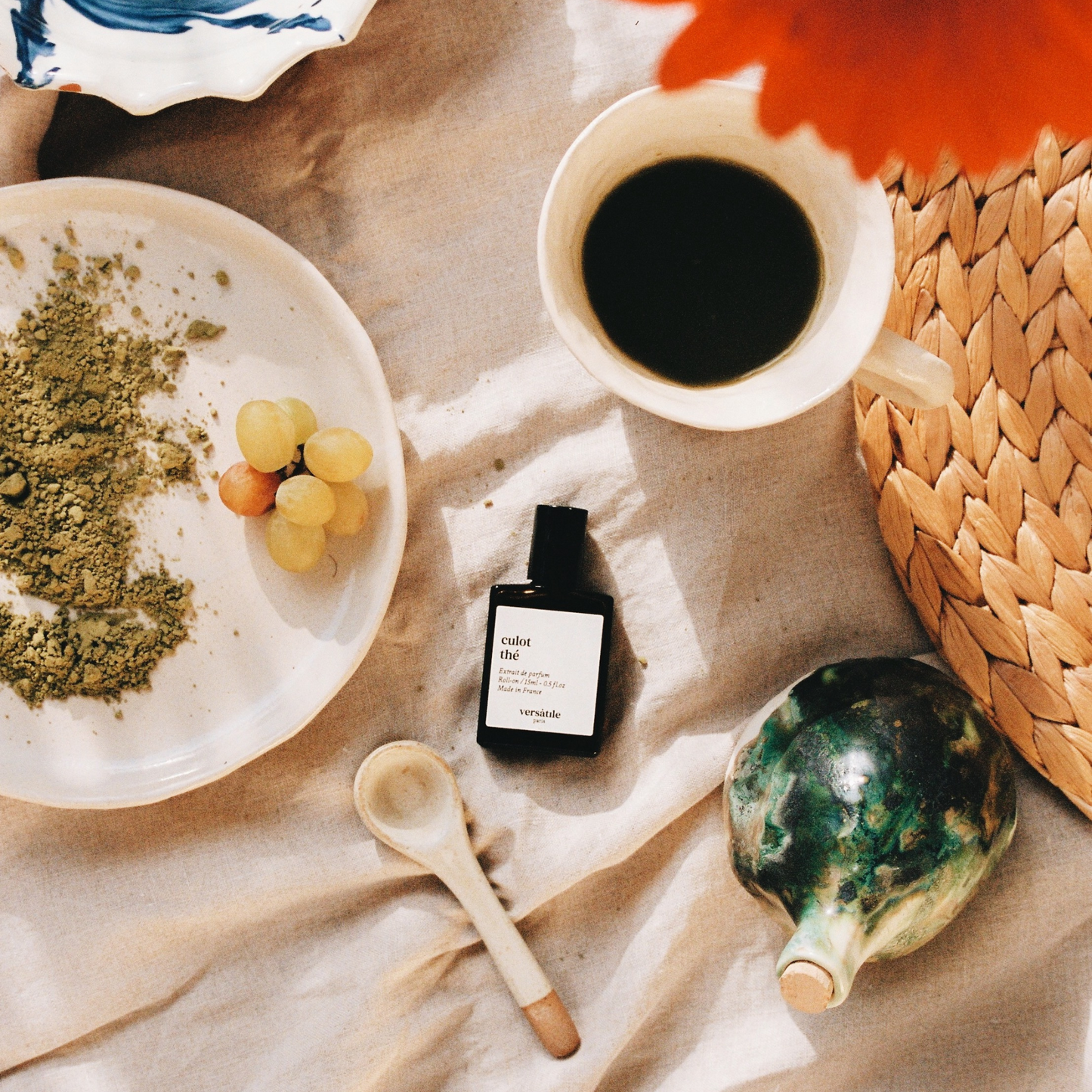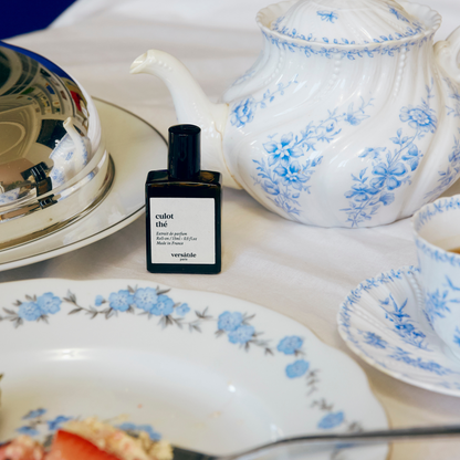 Culot Thé by Versatile Paris takes takes on a Neo Jasmine, reworked into an evolving tea. A jasmine floral, apricot skin with a very fresh - spicy facet (ginger, garlic, wasabi), contrasted by a sweet and zesty facet (mandora, bergamot). Tea-time revisited.