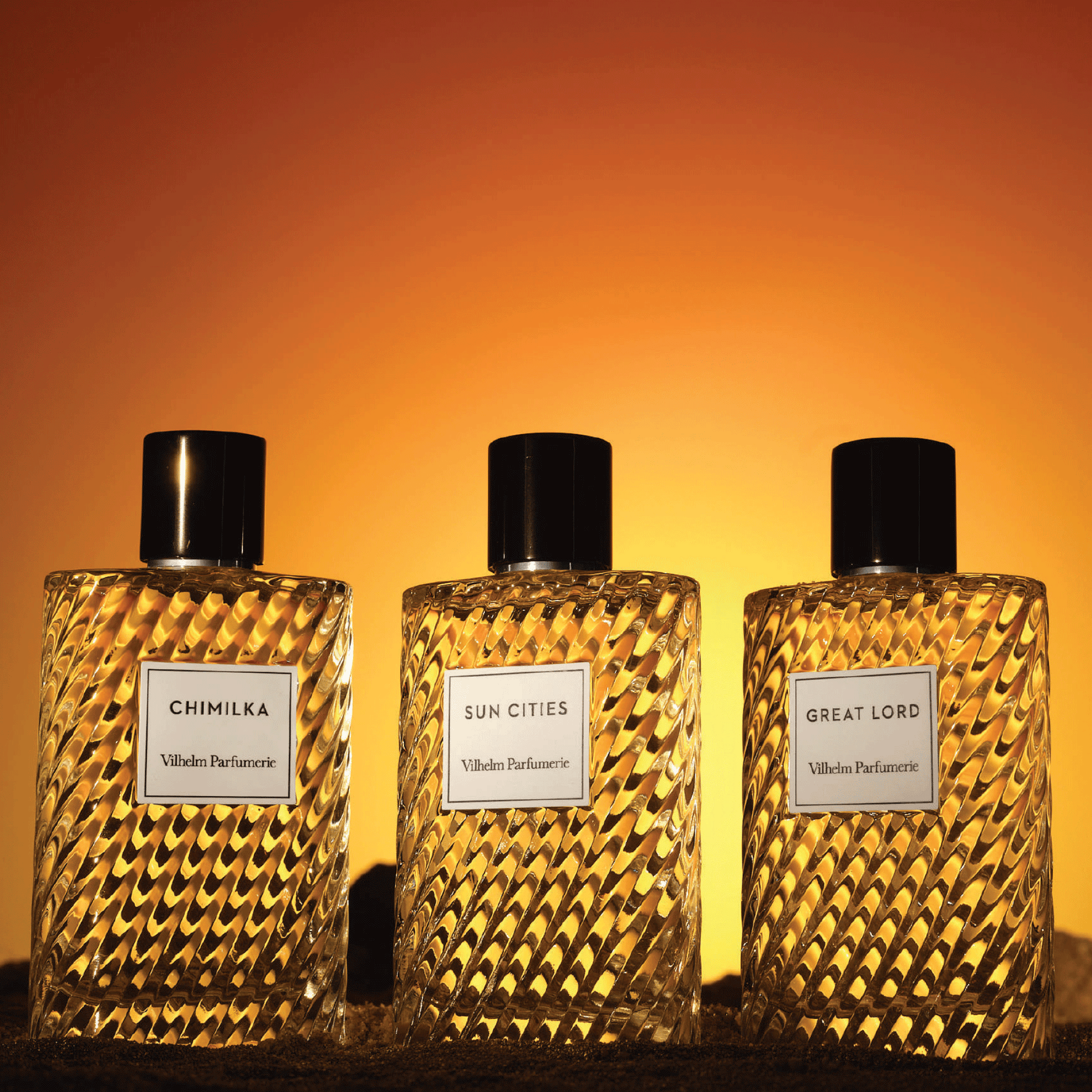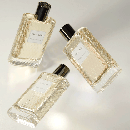 Middle: Dark Leather, Violet, Greek Saffron, Oakmoss, Corsican Immortelle, Chinese Osmanthus