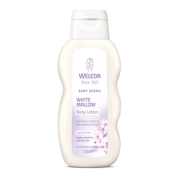 Awarded the National Eczema Association Seal of Acceptance, this mild, fragrance-free lotion, made with 95% organic ingredients, moisturizes sensitive skin and relieves itching caused by dryness. Organic white mallow and pansy extracts soothe baby's dry skin and promote the development of healthy-looking skin. Organic coconut oil hydrates with a cooling effect and leaves skin velvety soft, while borage seed oil and organic safflower seed oil, rich in essential fatty acids, help support and improve baby's delicate skin barrier.